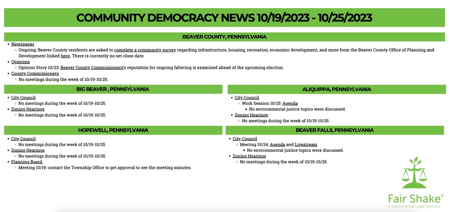 Fair Shake Environmental Legal Services News Scan